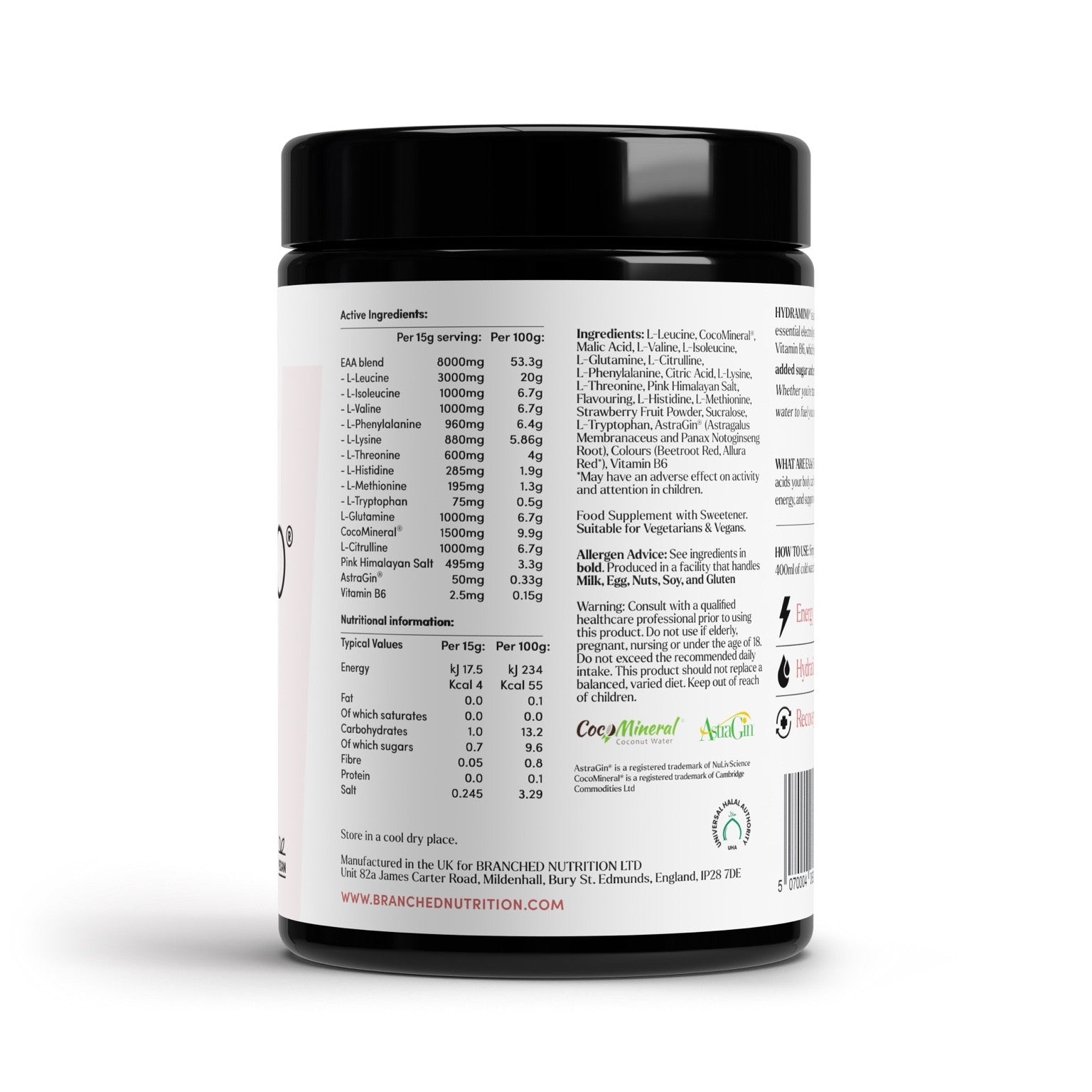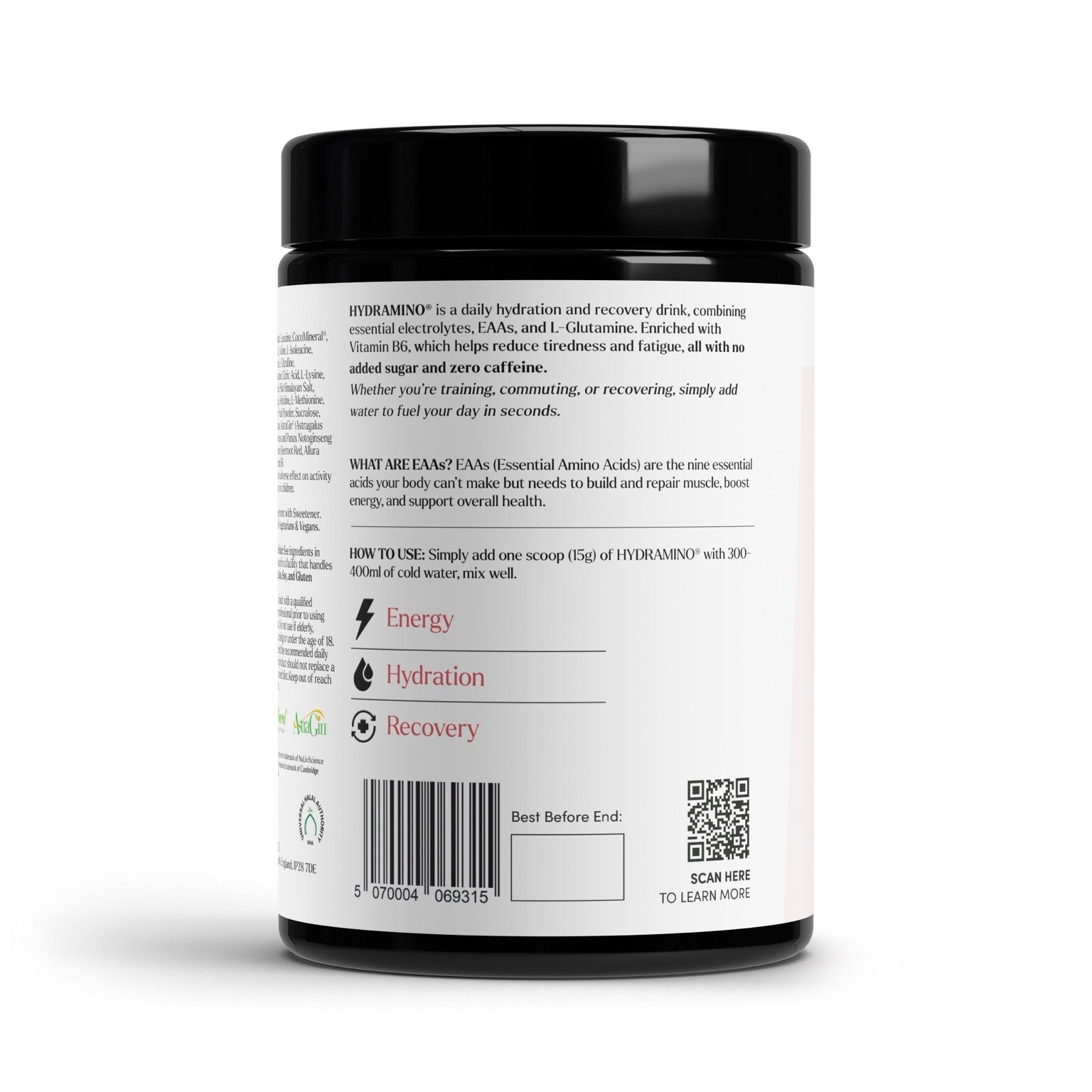 HYDRAMINO® by Branched Nutrition is your all-in-one daily hydration and recovery drink - combining Essential Amino Acids (EAAs), electrolytes, and L-Glutamine, enhanced with AstraGin®, a patented plant extract shown to support improved nutrient absorption.